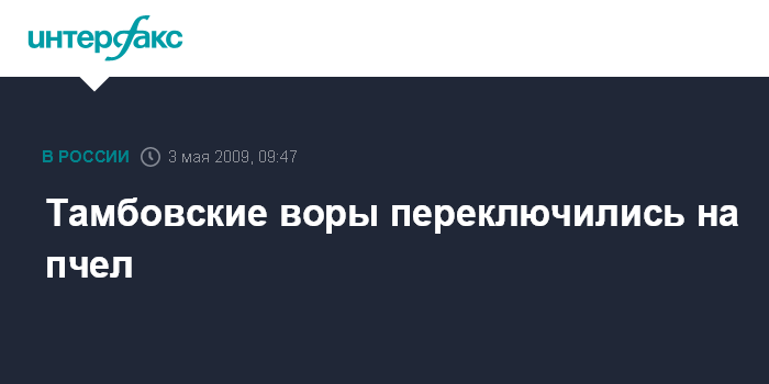 Тамбов. 3 мая. ИНТЕРФАКС-ЦЕНТР - В Тамбовской области зарегистрировано подряд несколько случаев воровства пчелиных семейств у пчеловодов, сообщили "Интерфаксу" в пресс-службе УВД области.