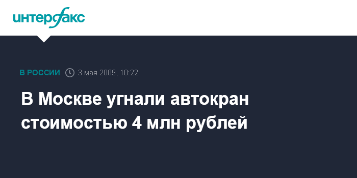 Москва. 3 мая. INTERFAX.RU - Трое неизвестных проникли на автостоянку на Ленинградском шоссе в Москве и угнали автокран "МАЗ", рассказал "Интерфаксу" в воскресенье источник в правоохранительных органах.