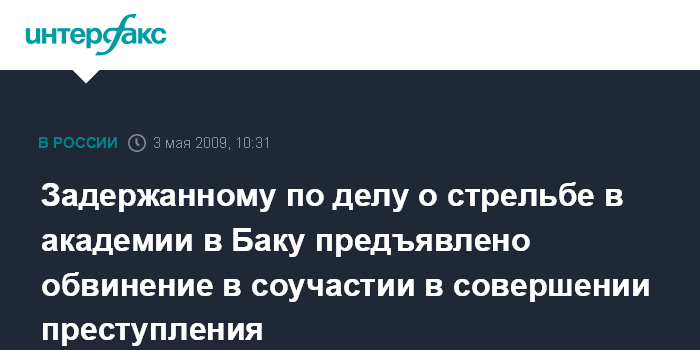 Задержанному по делу о стрельбе в академии в Баку предъявлено обвинение в соучастии в совершении преступления