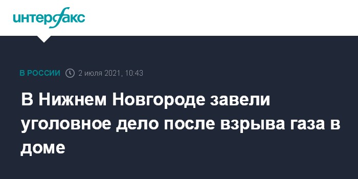 Москва. 2 июля. INTERFAX.RU - Следователи возбудили уголовное дело по факту взрыва газа в жилом доме в Нижнем Новгороде в пятницу, в результате чего пострадали три человека, сообщает региональное управление Следственного комитета России.