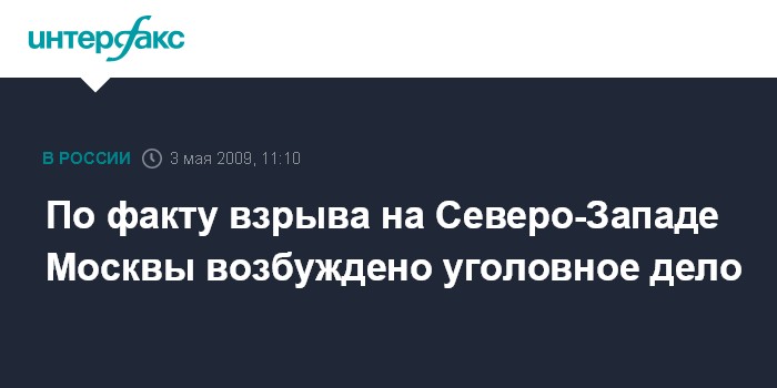 По факту взрыва на Северо-Западе Москвы возбуждено уголовное дело