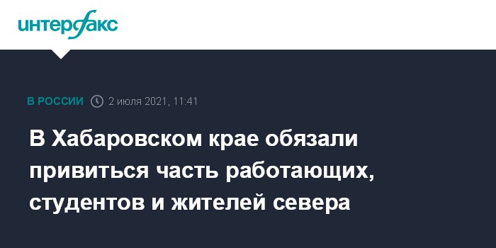 В Хабаровском крае обязали привиться часть работающих, студентов и жителей севера