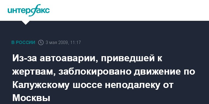 Москва. 3 мая. INTERFAX.RU - В Подмосковье из-за серьезной аварии заблокировано движение по Калужскому шоссе в районе моста через реку Десна.