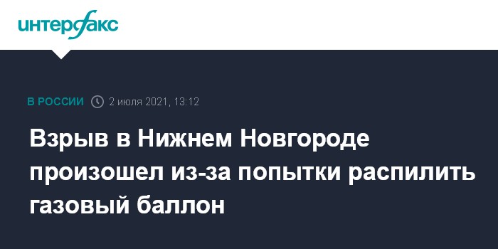 Москва. 2 июля. INTERFAX.RU - Газовоздушная смесь взорвалась в доме на улице Светлоярской в Нижнем Новгороде из-за неосторожного обращения с газовым баллоном, заявил губернатор региона Глеб Никитин.