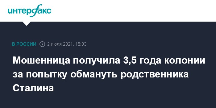 Мошенница получила 3,5 года колонии за попытку обмануть родственника Сталина