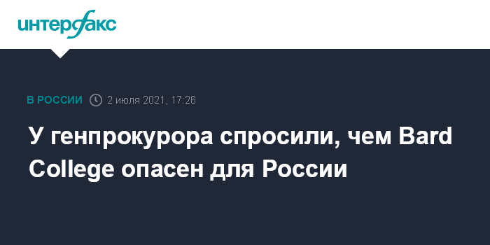 Москва. 2 июля. INTERFAX.RU - Уполномоченный по правам человека в Петербурге Александр Шишлов запросил у генпрокурора Игоря Краснова "факты и обстоятельства, свидетельствующие что деятельность Bard College представляет угрозу основам конституционного строя и безопасности" России, на основании которых колледж признан нежелательным.