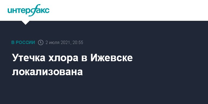 Москва. 2 июля. INTERFAX.RU - Утечка хлора в Ижевске локализована на уровне склада, выброс не представляет опасности для людей, сообщили "Интерфаксу" в пресс-службе "Ижводоканала".