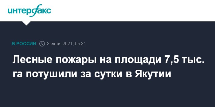 Москва. 3 июля. INTERFAX.RU - За сутки в Якутии потушили 42 лесных пожара на площади 7,5 тыс. га, сообщает в субботу пресс-служба Минэкологии республики.