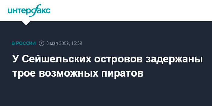 Москва. 3 мая. INTERFAX.RU - Береговая охрана Сейшельских островов арестовала трех предполагаемых сомалийских пиратов, передает британская телерадиокорпорация Би-би-си.