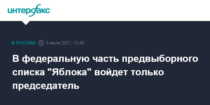 В федеральную часть предвыборного списка "Яблока" войдет только председатель