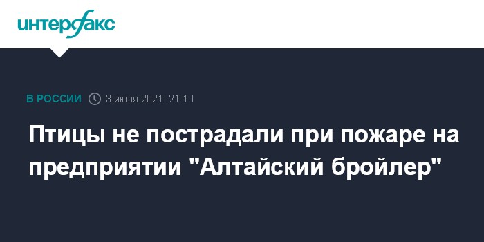 В "Черкизово" добавили, что жертв и пострадавших среди персонала нет, не пострадала и выращиваемая в "Алтайском бройлере" птица.