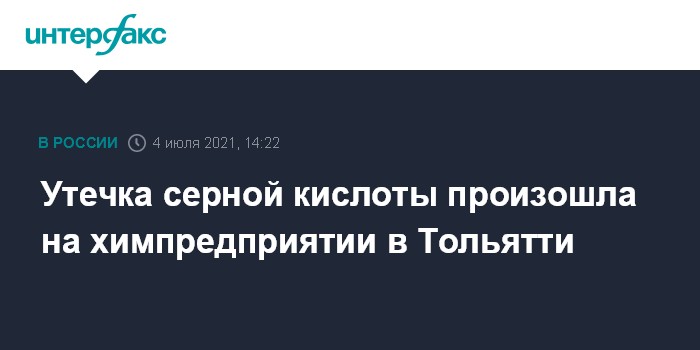 Москва. 4 июля. INTERFAX.RU - Цистерна с серной кислотой разгерметизировалась на предприятии "Алхим" в Тольятти, сообщил "Интерфаксу" информированный источник.