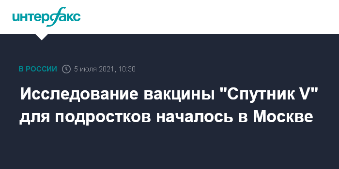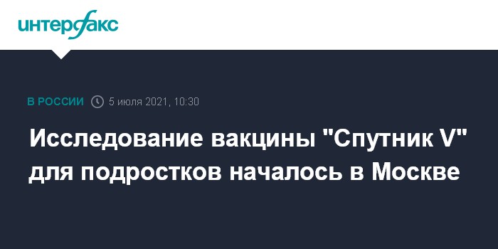 Москва. 5 июля. INTERFAX.RU - В столице стартовало клиническое исследование вакцины "Спутник V" от коронавирусной инфекции для подростков, сообщила журналистам заммэра Москвы по вопросам социального развития Анастасия Ракова.