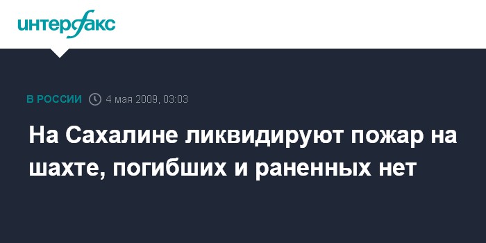 Южно-Сахалинск. 4 мая. ИНТЕРФАКС - ДАЛЬНИЙ ВОСТОК - На Сахалине ликвидируют пожар в шахте в пос. Ударный Углегорского района.
