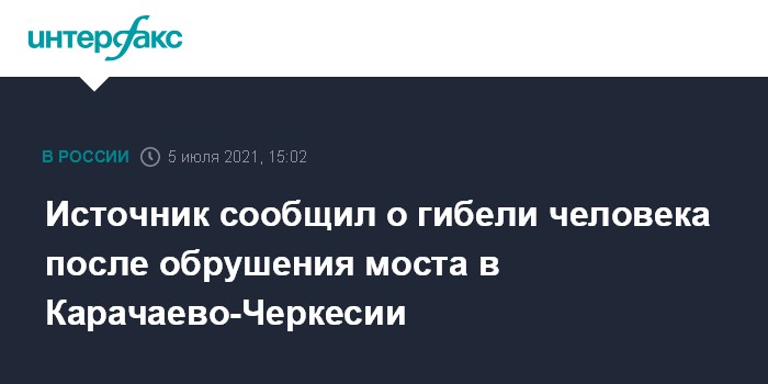 Москва. 5 июля. INTERFAX.RU - В Карачаево-Черкесии после обрушения моста через реку Кубань погиб автомобилист, сообщил "Интерфаксу" информированный источник в понедельник.