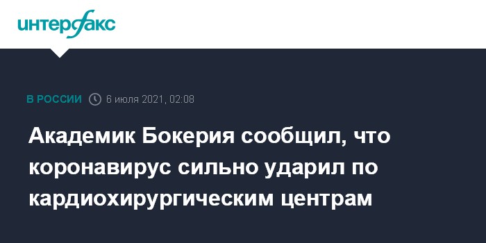 Москва. 6 июля. INTERFAX.RU - Эпидемия COVID-19 нанесла значительный удар по российским кардиохирургическим центрам, количество операций сократилось, заявил президент Национального медицинского исследовательского центра сердечно-сосудистой хирургии (НМИЦ ССХ) имени А.Н. Бакулева, главный внештатный сердечно-сосудистый хирург министерства здравоохранения РФ, академик РАН Лео Бокерия.