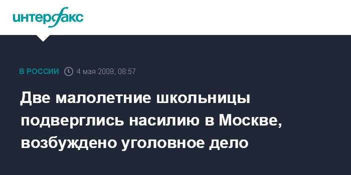 Две малолетние школьницы подверглись насилию в Москве, возбуждено уголовное дело