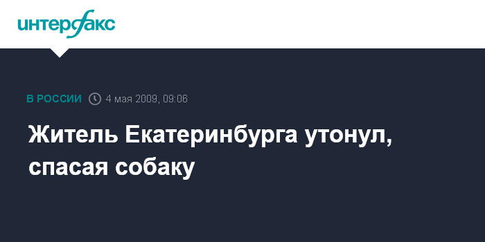 Москва. 4 мая. INTERFAX.RU - Житель Екатеринбурга утонул в Верх-Исетском пруду города, пытаясь спасти свою собаку. При этом сама собака не погибла.