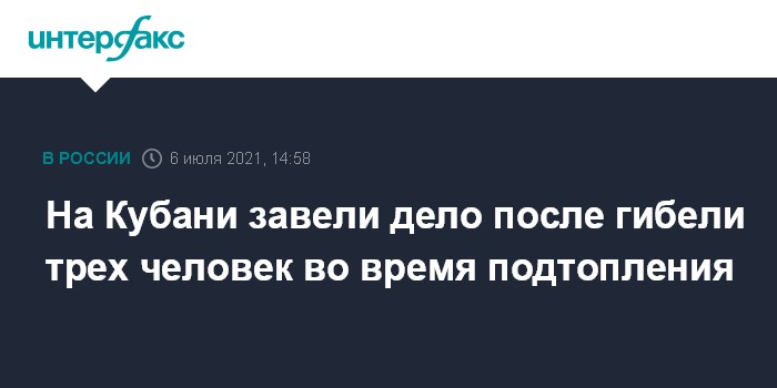 Москва. 6 июля. INTERFAX.RU - Гибель трех человек во время подтоплений в Туапсинском районе Краснодарского края будут расследовать в рамках уголовного дела. Об этом сообщает пресс-служба следственного управления СК РФ по региону.