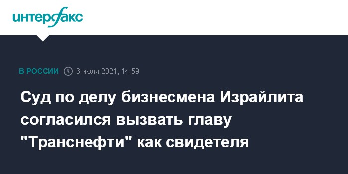 Суд по делу бизнесмена Израйлита согласился вызвать главу "Транснефти" как свидетеля