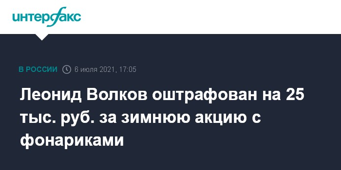 "Волкову назначен административный штраф в размере 25 тыс. рублей", - сообщили "Интерфаксу" в пресс-службе суда во вторник. Суд признал его виновным по ч. 2 ст. 20.2 КоАП РФ (нарушение организации несанкционированной акции).