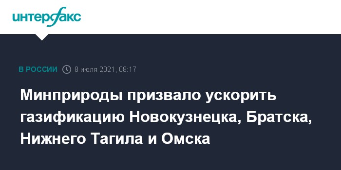 Минприроды призвало ускорить газификацию Новокузнецка, Братска, Нижнего Тагила и Омска