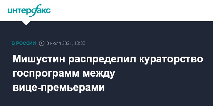 Москва. 8 июля. INTERFAX.RU - Глава правительства Михаил Мишустин распределил кураторство государственных программ между вице-премьерами.