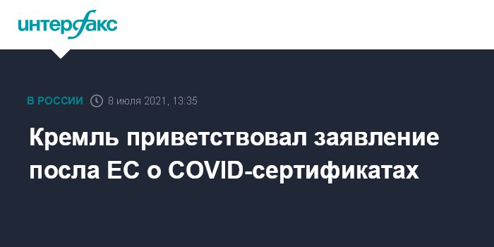 Кремль приветствовал заявление посла ЕС о COVID-сертификатах