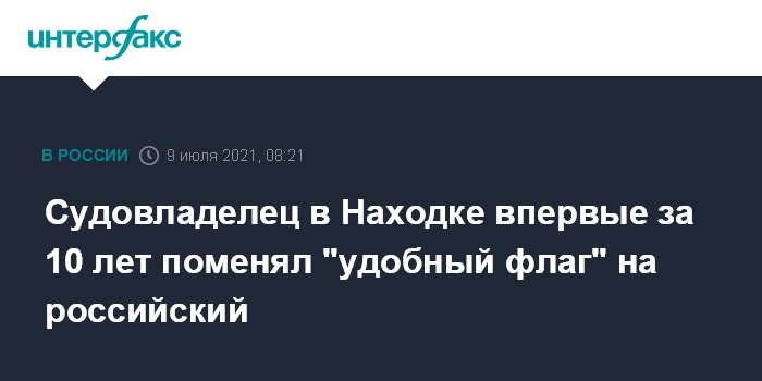 Судовладелец в Находке впервые за 10 лет поменял "удобный флаг" на российский