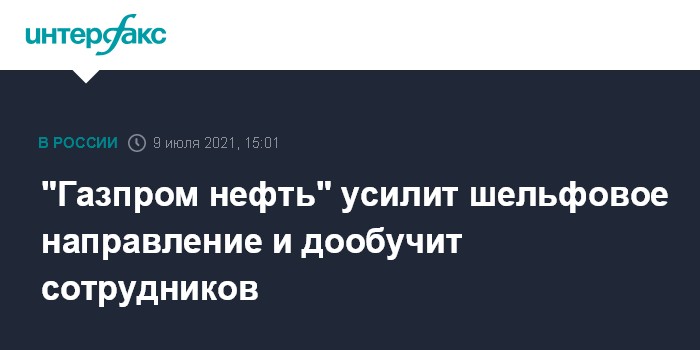 Москва. 9 июля. INTERFAX.RU - "Газпром нефть" намерена усилить шельфовое направление, готовит для этого новую учебную программу для сотрудников ООО "Газпром нефть шельф", говорится в материалах компании.