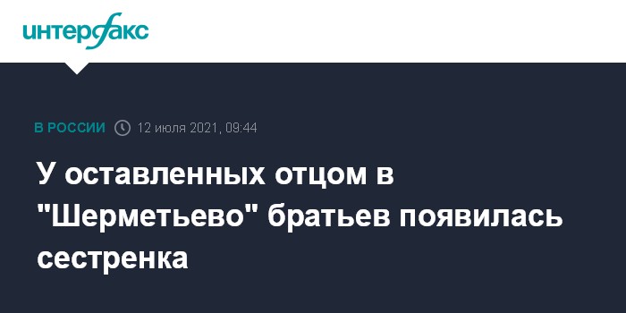 Москва. 12 июля. INTERFAX.RU - Братья из Хабаровского края которых в январе 2020 года отец бросил в аэропорту "Шереметьево", сейчас живут с мамой и младшей сестрой, рассказала журналистам уполномоченный по правам ребенка Анна Кузнецова.