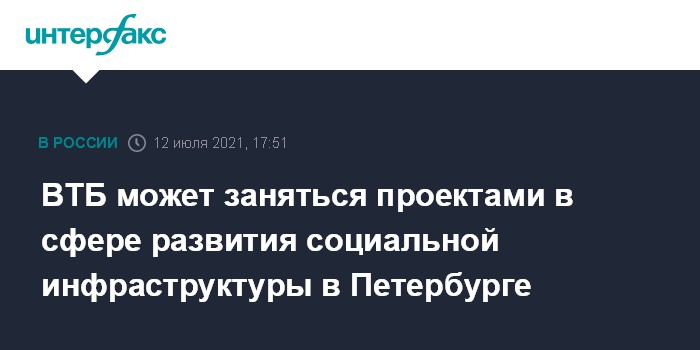 Москва. 12 июля. INTERFAX.RU - Группа ВТБ изучает возможность реализации проектов в сфере развития социальной инфраструктуры в Санкт-Петербурге.