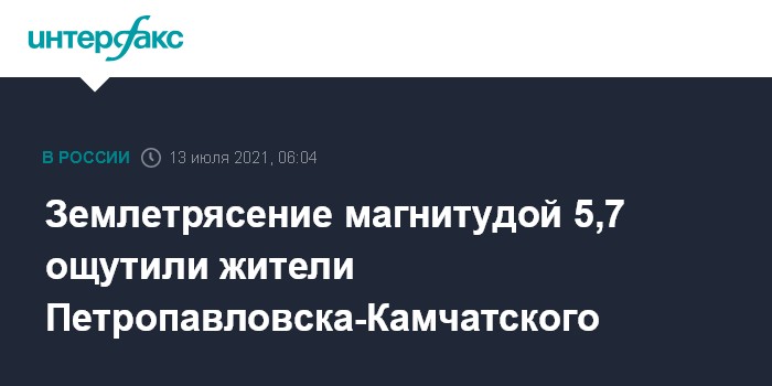 Москва. 13 июля. INTERFAX.RU - Сейсмологи зарегистрировали землетрясение магнитудой 5,7, произошедшее у восточного побережья Камчатки, сообщили "Интерфаксу" в Камчатском филиале Единой геофизической службы РАН.