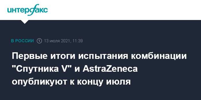 Москва. 13 июля. INTERFAX.RU - Первые исследования комбинации вакцин от коронавируса "Спутник V" и AstraZeneca завершаются, их результаты планируется опубликовать уже в конце июля, сообщил во вторник директор Российского фонда прямых инвестиций (РФПИ) Кирилл Дмитриев.