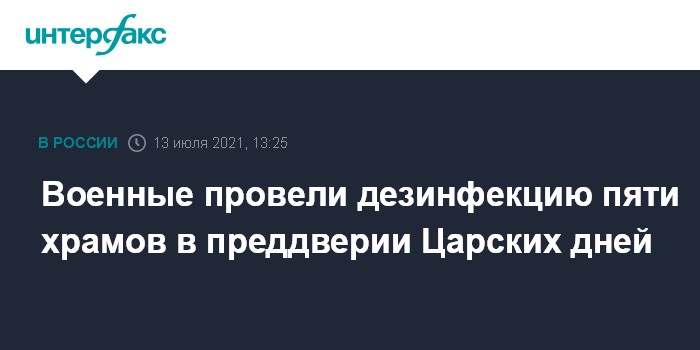 Москва. 13 июля. INTERFAX.RU - В Свердловской области специалисты войск радиационной, химической и биологической (РХБ) защиты Центрального военного округа в преддверии Царских дней провели дезинфекцию пяти храмов и объектов на территории монастыря Святых Царственных Страстотерпцев в урочище Ганина Яма, сообщила пресс-служба ЦВО.
