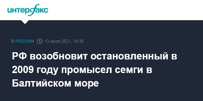 Москва. 13 июля. INTERFAX.RU - Россия возобновляет промысел атлантического лосося (семги) в Балтийском море и Финском заливе, который не велся с 2009 года.