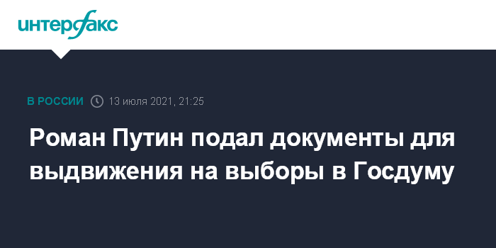 Роман Путин подал документы для выдвижения на выборы в Госдуму