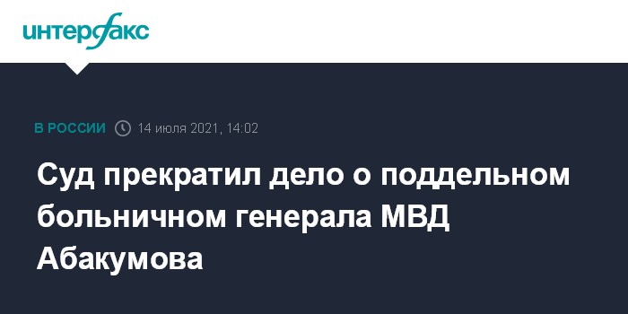 Суд прекратил дело о поддельном больничном генерала МВД Абакумова