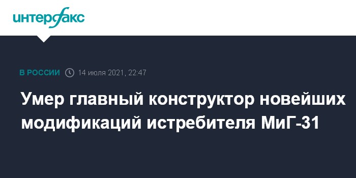 Умер главный конструктор новейших модификаций истребителя МиГ-31