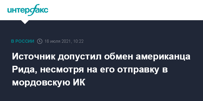 "Отправка Рида в колонию совершенно не означает, что вопрос возможного обмена его на кого-то из россиян закрыт. Если будет достигнут консенсус с американской стороной по этому вопросу, он может быть выдан в США", - сказал собеседник агентства.