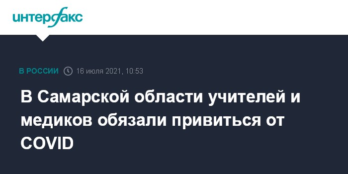 Москва. 16 июля. INTERFAX.RU - Обязательную вакцинацию против коронавируса для отдельных категорий граждан, работающих с населением, вводят в Самарской области, говорится в постановлении главного санврача региона Светланы Архиповой, опубликованном на сайте областного Роспотребнадзора.