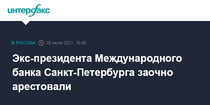 Экс-президента Международного банка Санкт-Петербурга заочно арестовали