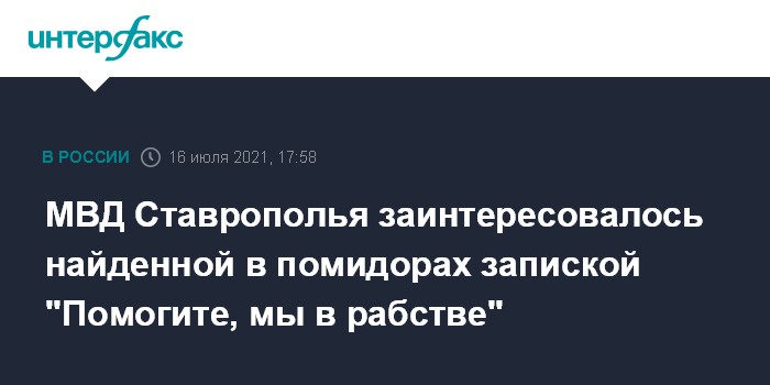 МВД Ставрополья заинтересовалось найденной в помидорах запиской "Помогите, мы в рабстве"