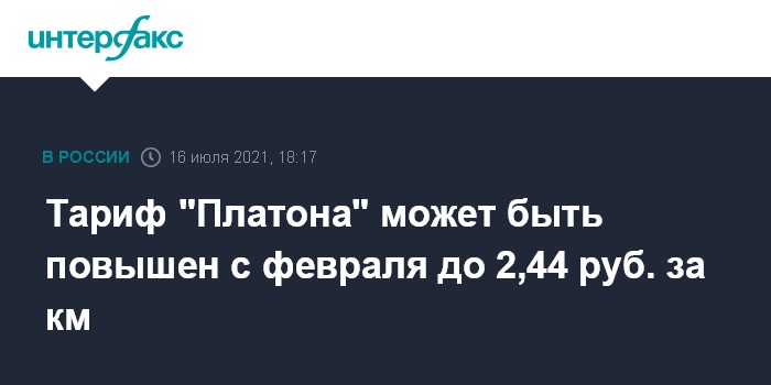 Москва. 16 июля. INTERFAX.RU - Тариф системы "Платон" по взиманию платы с грузовиков массой более 12 тонн за проезд по федеральным трассам с 1 февраля 2022 года может быть проиндексирован на 10 копеек за километр: с текущих 2,34 рубля з километр до 2,44 рубля, следует из опубликованного в пятницу прогноза Росавтодора.