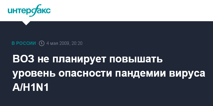 ВОЗ не планирует повышать уровень опасности пандемии вируса А/H1N1