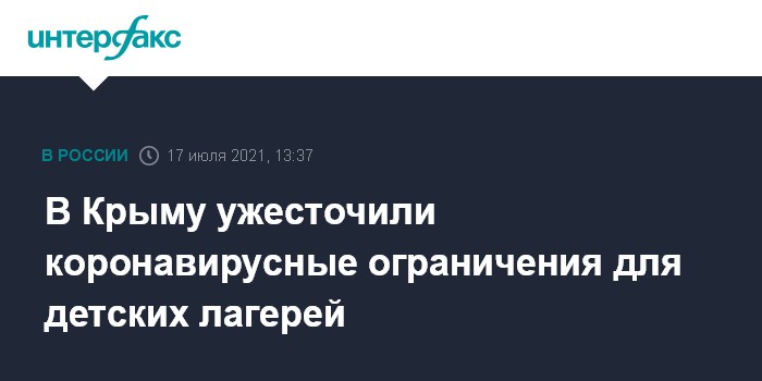 Москва. 17 июля. INTERFAX.RU - Глава Крыма Сергей Аксенов в субботу внес в указ о режиме повышенной готовности изменения, ужесточающие ограничения для детских лагерей и социальных учреждений.