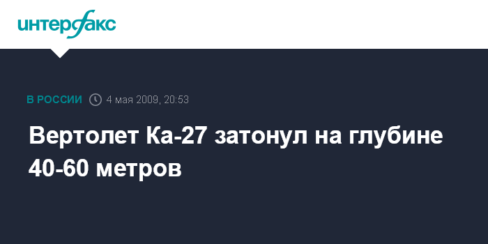 Вертолет Ка-27 затонул на глубине 40-60 метров