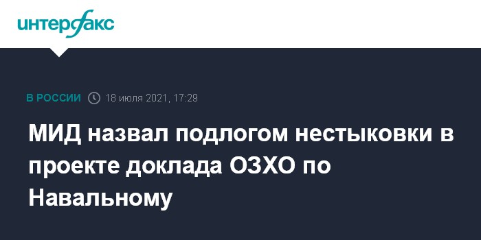 МИД назвал подлогом нестыковки в проекте доклада ОЗХО по Навальному