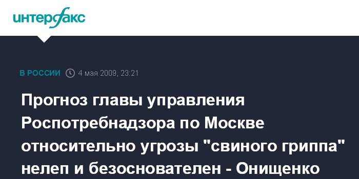 Прогноз главы управления Роспотребнадзора по Москве относительно угрозы "свиного гриппа" нелеп и безоснователен - Онищенко