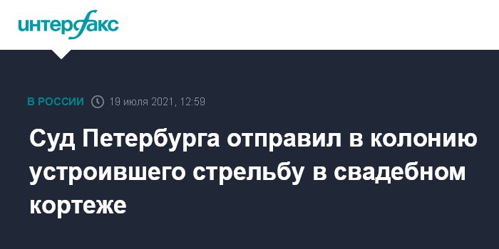 Москва. 19 июля. INTERFAX.RU - Красносельский суд Петербурга приговорил приезжего из Закавказья к семи месяцам колонии общего режима по делу о стрельбе на свадьбе, сообщает в понедельник объединенная пресс-служба судов города.